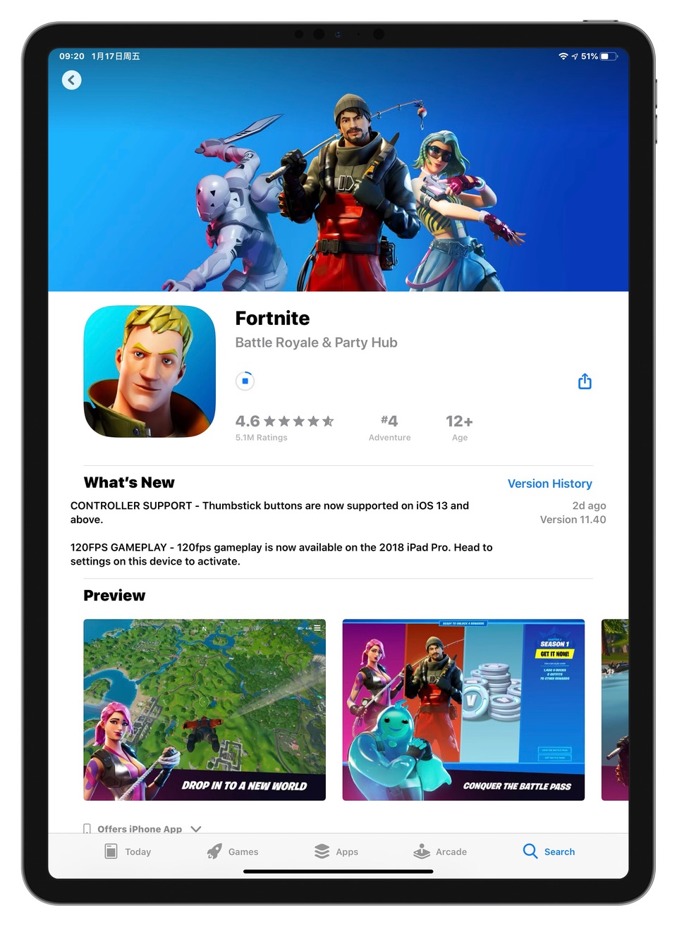 在最近的版本更新中,《堡垒之夜》v11.40 正式加入了对 iPad Pro ProMotion 自适应刷新率屏幕的支持,现在你能够在 2018 款 iPad Pro 上玩到支持 120Hz 刷新率的《堡垒之夜》了。值得一提的是,除了带来 120Hz 刷新率的支持以外,《堡垒之夜》的更新还对手柄支持进行了维护,现在已经完全支持手柄的 L3 和 R3 按钮操作。