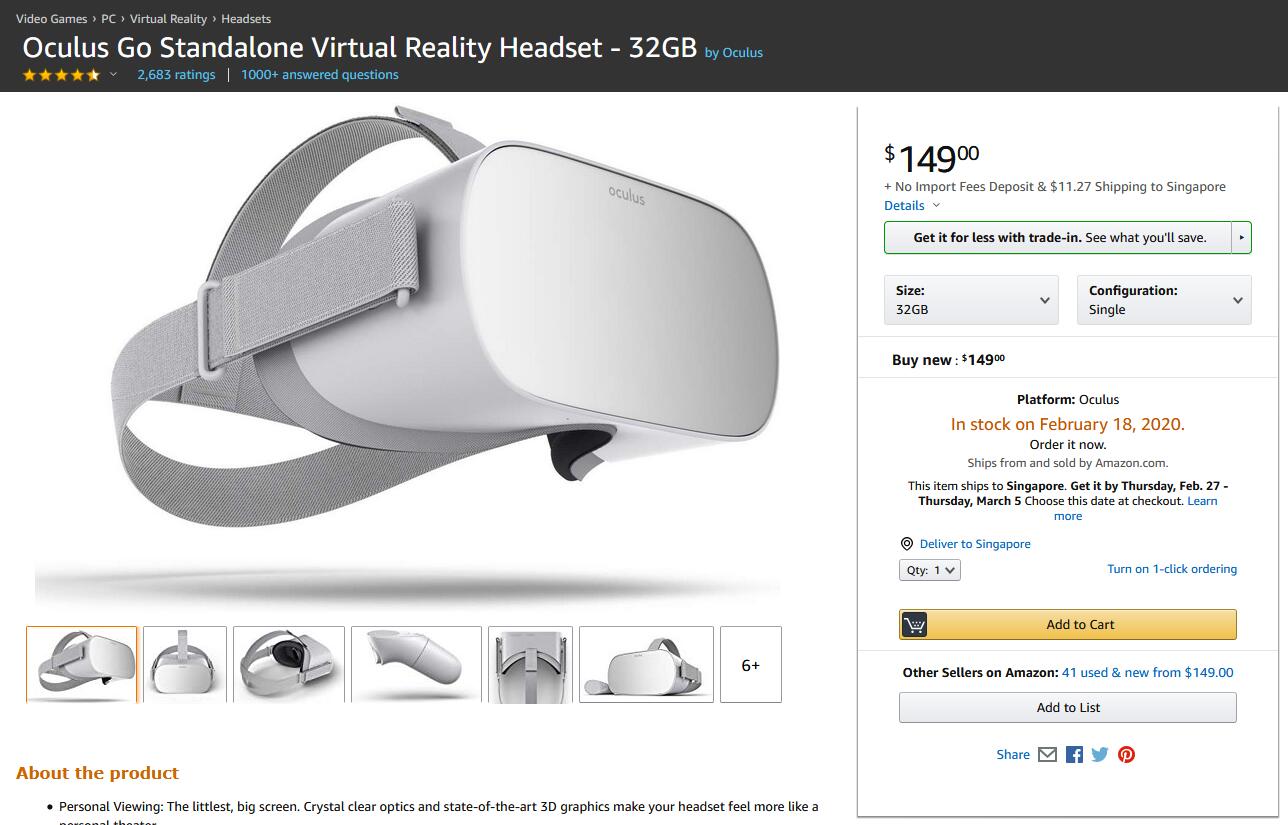 经外媒UploadVR证实,Facebook将对32GB版本的Oculus Go头显进行调价,从最初的199美元/199英镑永久下降到149美元/139英镑。Oculus Store和Amazon两个官方销售渠道已经进行调价,而且Facebook确认本次降价并非限时或者促销活动。与此同时64GB的Oculus Go现在的售价为199美元/189英镑。