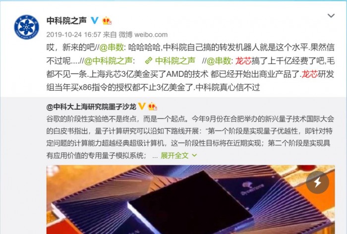 此消息被曝出后,龙芯中科被质疑以“伪自主”骗取国家科研经费,业界有人嘲讽:“汉芯龙芯,芯芯造假”。
