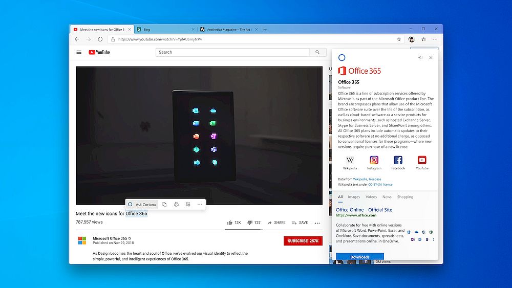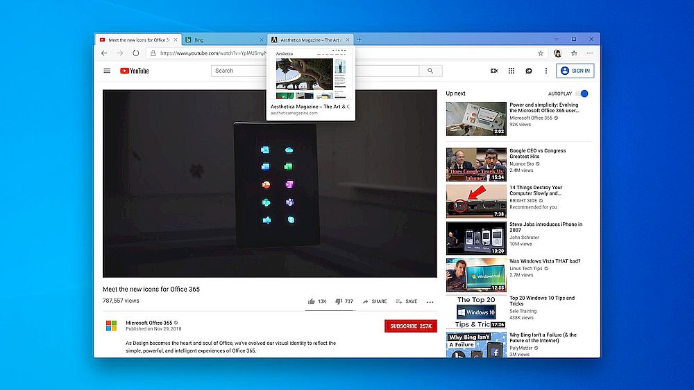 微软接下来要改进的另一项内容是将透明度和其他Fluent设计语言元素融入到Edge的主界面中,从而让Edge和Windows 10其他应用程序匹配统一。
