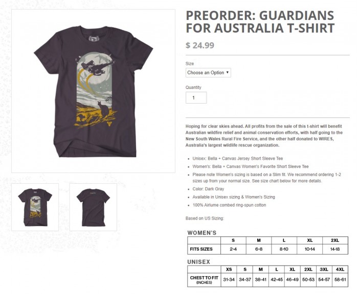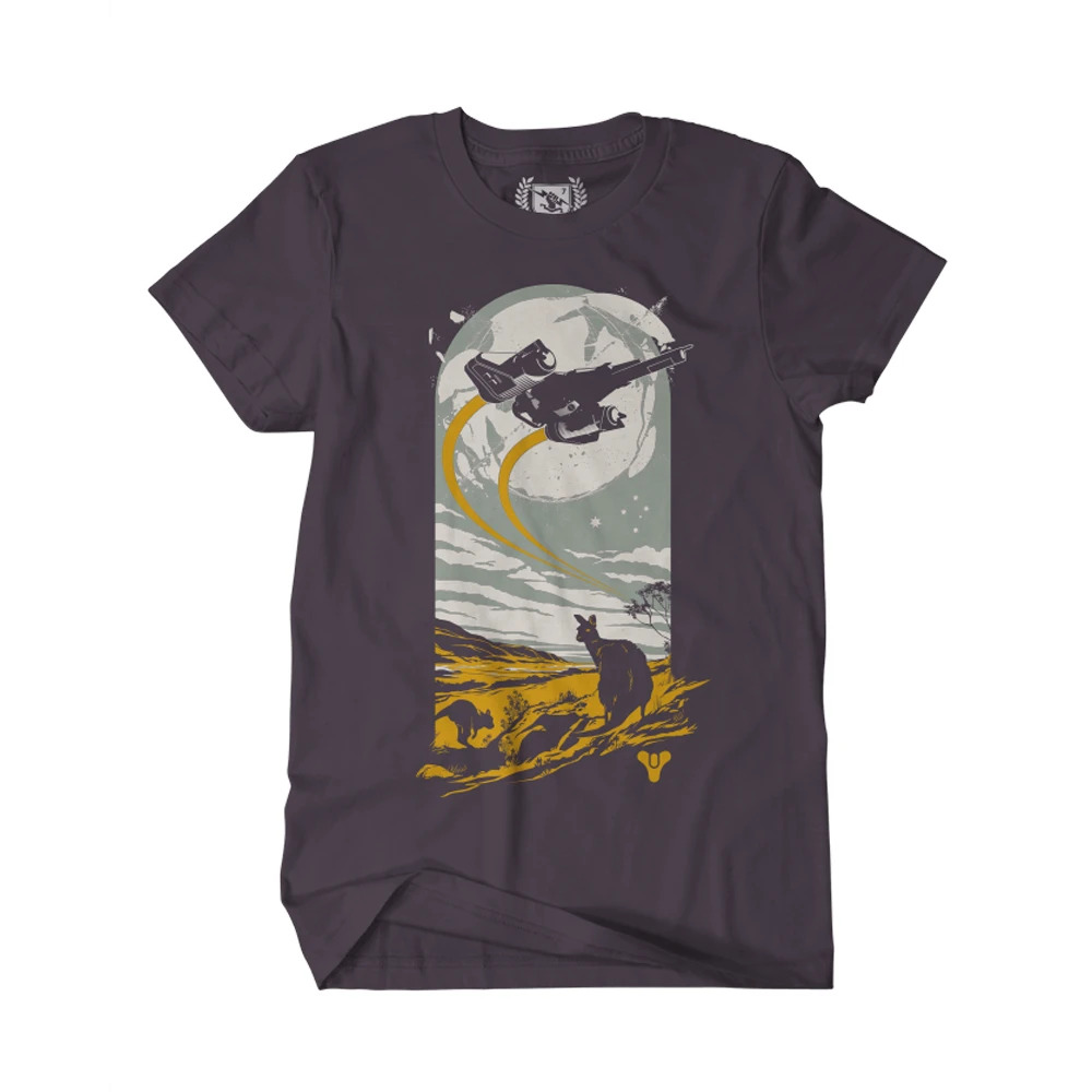这款限量版《命运2》T恤正面印着澳大利亚袋鼠、草原的形象,背面印着Bungie的Logo和一颗爱心,这款T恤销售额的半数将会捐献给WIRES,他们是澳大利亚最大的山火救援组织。另外一半将会捐献给NSW山火服务部,他们是新南威尔士地区奋战在最前线的救火部门。