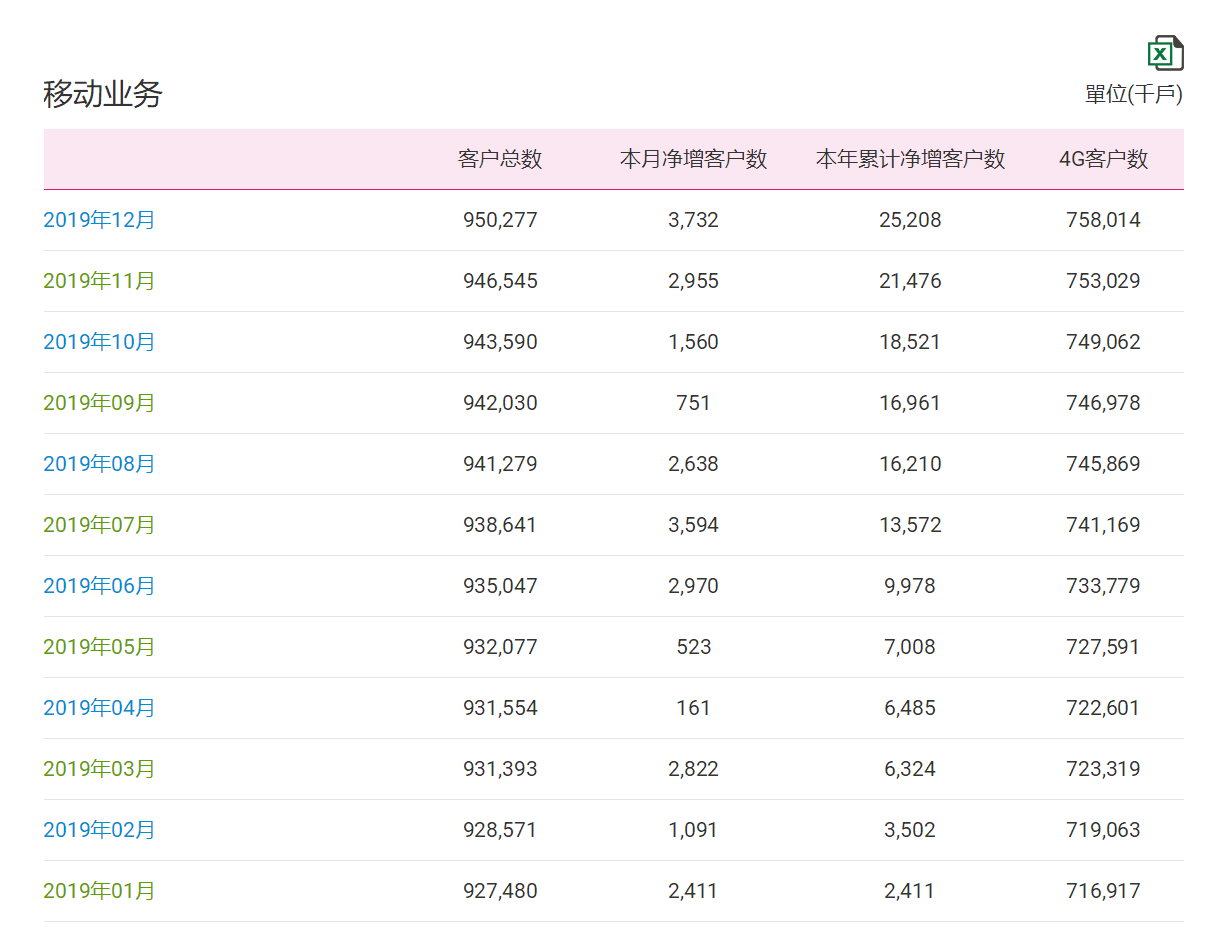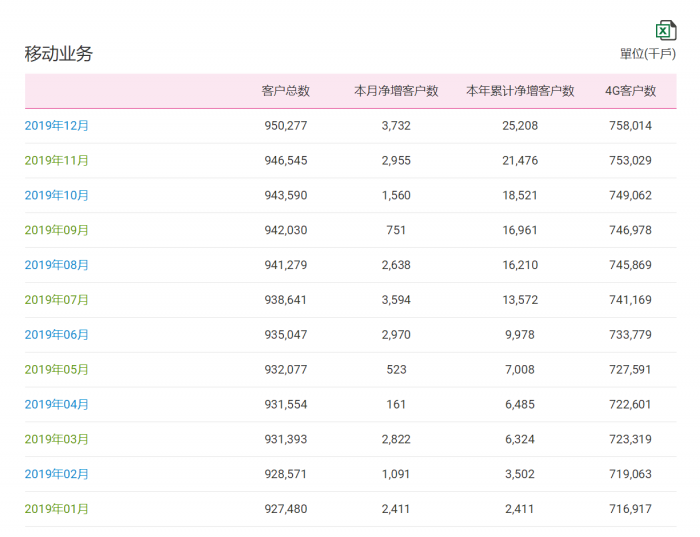 近日,三大运营商陆续公布了2019年12月份运营数据,也为过往一年画上了句号。几家欢乐几家愁,中国联通肯定是最愁的。截止2019年底,中国移动的移动业务用户总数为9.50亿,当年净增2520.8万,中国电信为3.36亿,当年净增3257万,中国联通为3.18亿,当年净增343.9万。