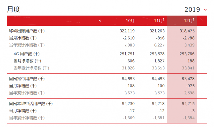 相比之下,中国移动12月一个月就净增用户373.2万,超过中国联通全年总和。