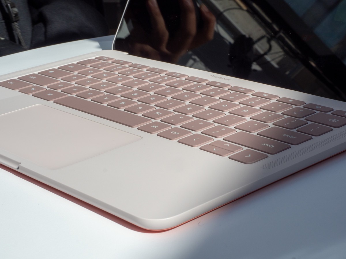 外观上,Pixelbook Go三围311x206x13.4mm,重量1061g,镁金属材质,覆盖康宁玻璃。