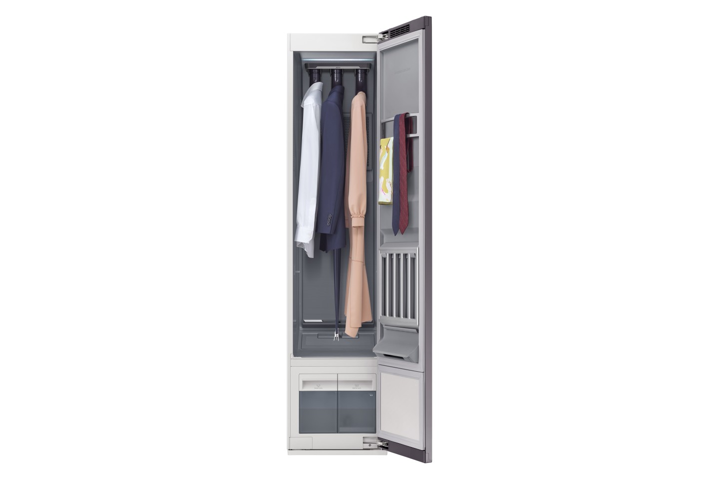 AirDresser的前部具有触摸屏LCD面板,内部有足够的空间可同时容纳三件夹克和三条裤子,可以整夜运转,而不会打扰处于睡眠中的家庭,并且包括用于蒸汽的便携式水容器,因此无需水暖。