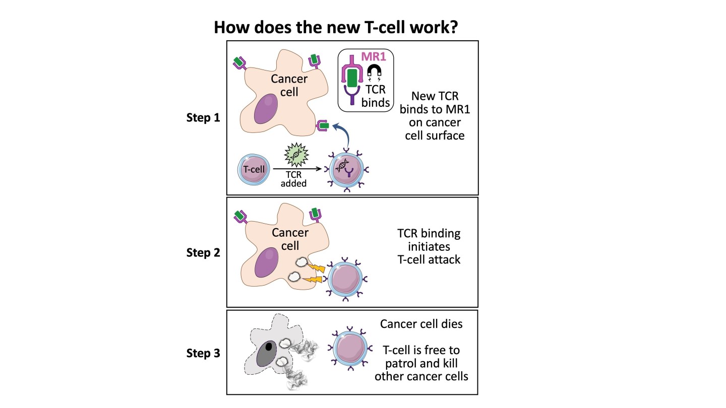 人们认为,新发现的T细胞能够通过归巢在称为MR1的表面分子上来区分癌细胞与健康细胞。尽管该分子几乎存在于人体的所有细胞中,但研究人员怀疑它在癌细胞中的呈现方式有所不同,从而使单个TCR能够有效靶向多种肿瘤。