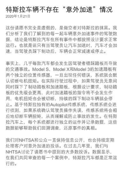 美国国家公路交通安全管理局表示,收到一份来自独立投资者布莱恩·斯帕克(Brian Sparks)的请愿书,包含127起相关投诉,涉及2013年至2019年生产的特斯拉汽车,包括Model 3、Model S和Model X轿车和SUV。该报告认为,特斯拉汽车存在意外加速隐患,请求召回50万辆特斯拉电动车。