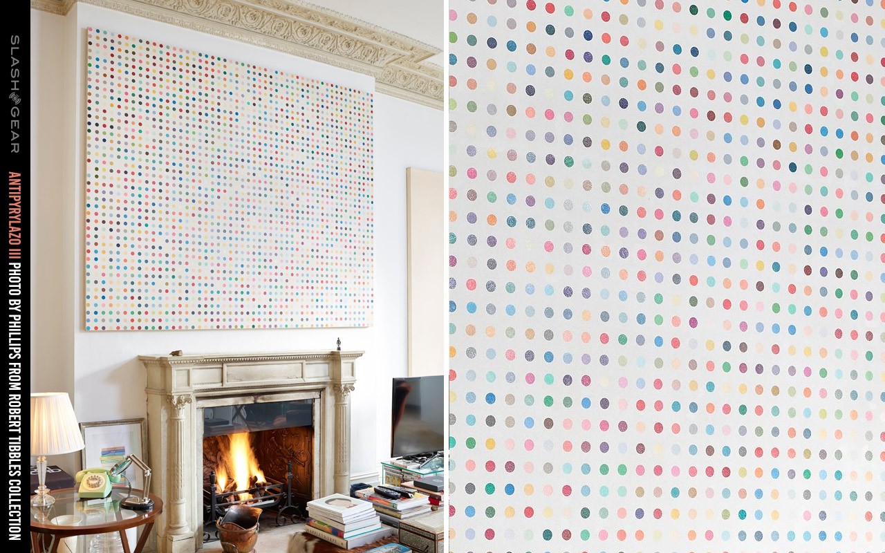 在上方,您可以看到Tibbles购买的另一件达明安·赫斯特艺术品(本次拍卖共有6件)。这是赫斯特于1994年创作的Antipyrylazo III,是赫斯特“点画”(Spot Paintings)系列的早期作品之一。这件特殊的艺术品包含2050个手绘且精心安排的不同颜色的斑点。