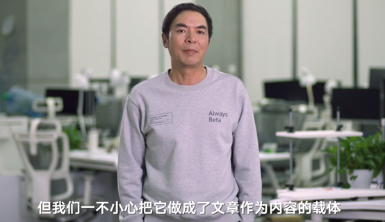 “回过头来看,我们当年有两个小小失误”。张小龙指出,一个是,微信公众平台很长时间都只有PC Web版,这限制了内容创作者的范围;另一个更重要的是,一不小心把公众平台做成了文章作为内容的载体,使得其他的短内容的形式没有呈现出来,进而使得微信在短内容方面有一定的缺失。