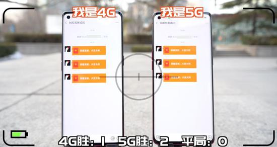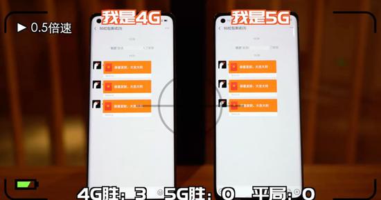 这个结果让人有些意外,在网速相差数倍的情况下,4G和5G抢红包竟然打成了平手。