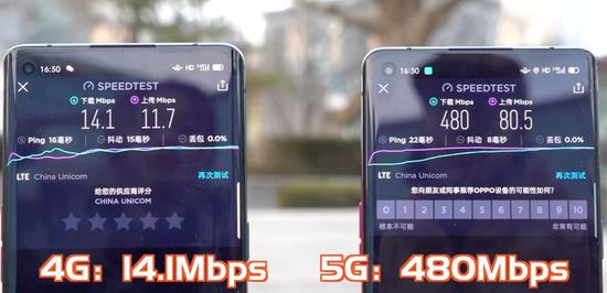 最后的测试在室外5G信号较强的地方,4G下行速度14.1Mbps,5G下行速度480Mbps。