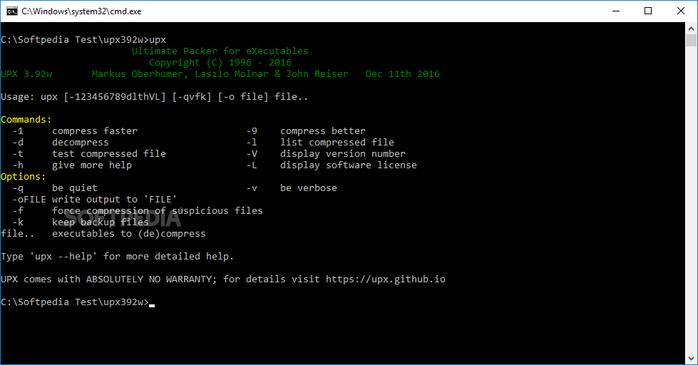 UPX(the Ultimate Packer for eXecutables)是一个非常全面的可执行文件压缩软件,支持dos/exe、dos/com、dos/sys、djgpp2/coff、 watcom/le、win32/pe、rtm32/pe、tmt/adam、atari/tos、linux/i386等几乎所有平台上的可执行文件, 具有极佳的压缩比,还可以对未压缩的文件和压缩完后进行比较。