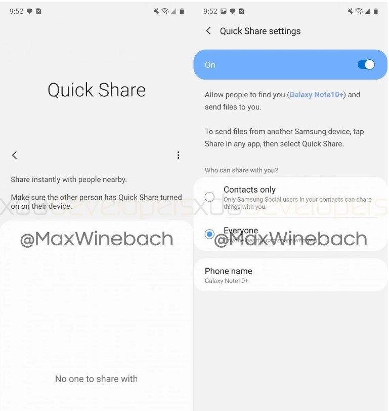 现在,XDA开发者在Galaxy S20+智能手机中发现了“快速共享”( Quick Share)功能。他们还设法获得了相关的APK,并将其安装在其他一些Galaxy智能手机上。快速共享的工作方式类似于苹果Airdrop工作方式。为了能够将文件从三星Galaxy设备传输到另一个Galaxy设备,您必须同时打开蓝牙和WiFi,并且两个设备都必须彼此靠近。
