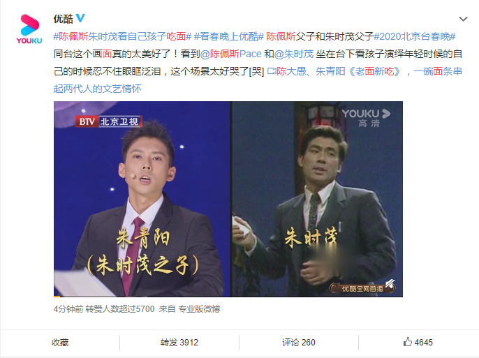 1月25日晚,各大卫视的春晚相继亮相,其中北京卫视春晚引发关注。据媒体报道,2020年北京卫视春晚上演“回忆杀”,陈佩斯的儿子和朱时茂的儿子俩人将当年的经典小品《吃面条》搬上春晚舞台。