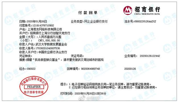 即刻公司表示,向武汉大学抗击新型肺炎基金捐赠100万人民币助力新型肺炎疫情的控制。据悉,款项将用于新型冠状病毒感染肺炎防控(防疫)药品、设备和物资的采购,以及武汉大学人民医院、武汉大学中南医院和武汉大学校医院开展新型冠状病毒感染肺炎救治和防控工作的相关费用支出。