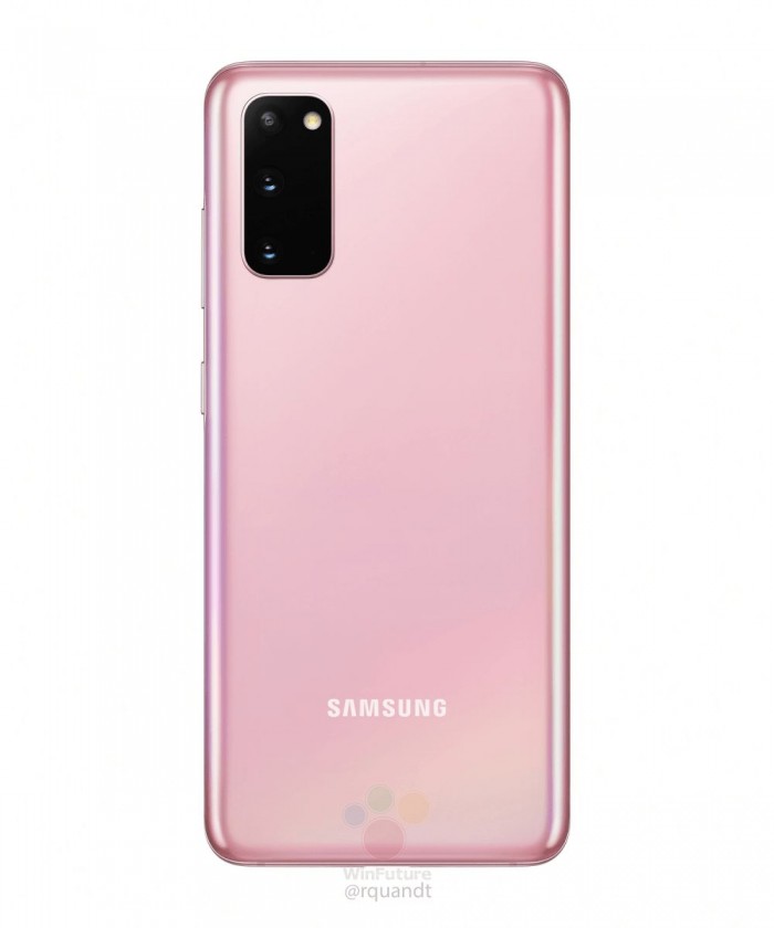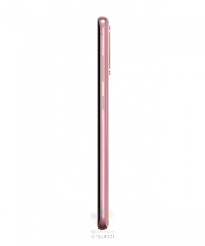 Galaxy S20系列即将于2月11日正式登场,不过在此之前德国科技媒体WinFutur.de分享了S20系列的高清渲染图,并于今天放出了粉红色版本的S20渲染图。根据渲染图显示,除了粉色版本之外三星还会提供Cosmic Grey, Cloud Blue和Cosmic Black选项。更重要的是S20系列似乎使用的是2.5D曲面玻璃,而不是此前S系列上的3D玻璃。