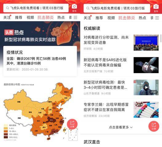 截至1月26日,该频道已涵盖疫情地图、权威解读、医护患者、防治应对、辟谣追踪等综合板块,累计服务2.2亿人次。平均每天近8000万用户通过今日头条关注肺炎疫情防治信息,日均阅读量和观看量超过10.5亿次。