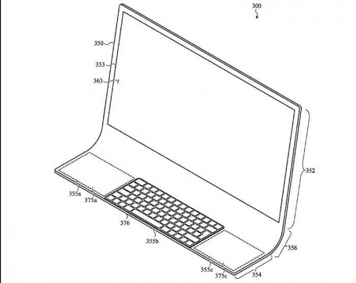 美国专利和商标局公布了一份苹果递交的专利,专利中描述了一种使用一整块玻璃制作的 iMac。这款设备的上半部分是显示屏,下半部分是输入区。连接上半部分和下半部分的玻璃将采用柔性材料,可以调整角度。