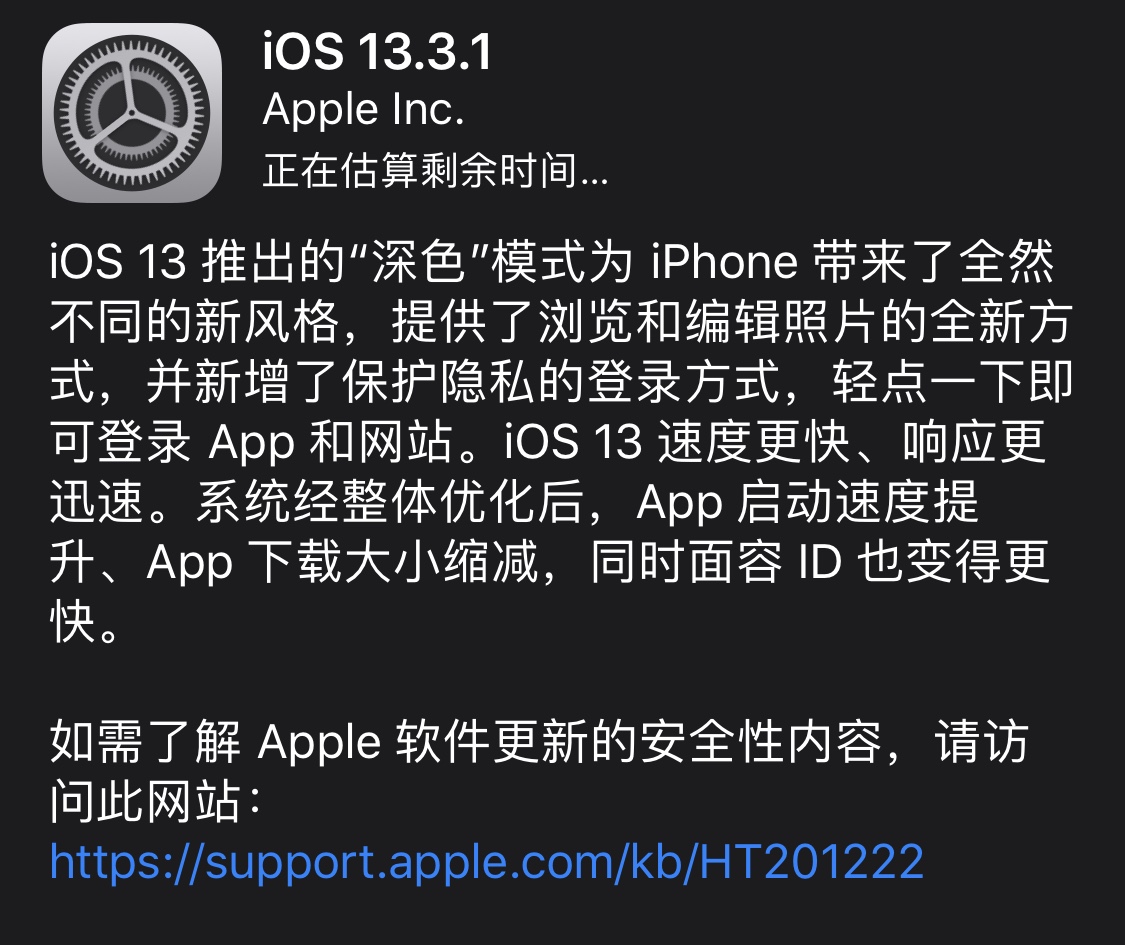 苹果发布了最新的 iOS 13.3.1 ,iPadOS 13.3.1 ,tvOS 13.3.1 ,macOS Catalina 10.15.3 以及 watchOS 6.1.2 更新。同时还有针对一些机型的 iOS 12.4.5 更新,以及 Homepod的13.3.1 更新。本次更新主要是提升了邮件应用性能已经修复BUG,在设置中可以关闭U1芯片的功能。