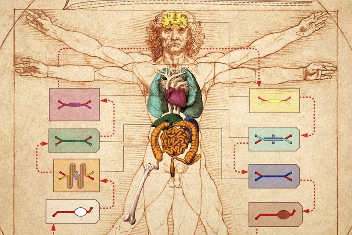 如今,哈佛大学怀斯研究所的科学家们将其中的10个模拟芯片拼凑在一起,创建了一个功能完善的“人体 - 芯片”平台,该平台可提供有关潜在药物在整个人体中的行为方式的新的见解。