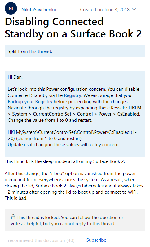 微软引入了代替 S3 电源状态的“现代待机”(Modern Standby)模式。然而许多用户报告称,笔记本电脑容易在睡眠时遇到问题,比如过热直到电量消耗殆尽。Modern Standby 和 S3 的主要区别,在于前者允许小号电池电量的后台活动(例如系统更新和下载)。