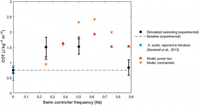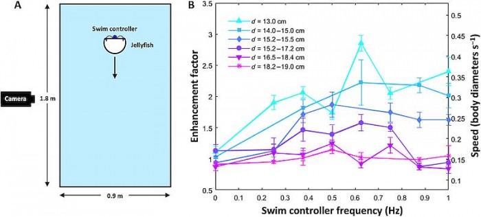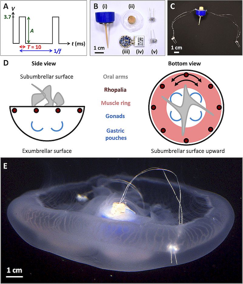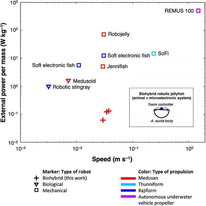 在装备这些微电子假肢之后,虽然所消耗的能量是普通水母的两倍,但是水母的游泳速度快了将近3倍。而且这些电子假肢可以去除,并不会影响水母。