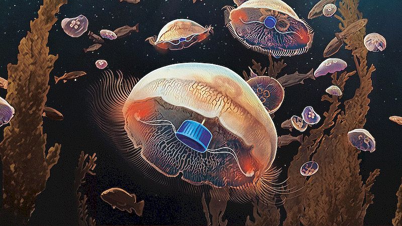 在电影《星球大战》和《机械战警》中,都展示了一种由机器打造的超级水母。而现在美国加州理工学院的科研团队开发了一种游泳控制器,能够让普通的水母变成“速度恶魔”。 该机械设备增强了水母在水中移动时候的自然脉动。加州理工学院在周三发布的一份声明中说:“这种新的假肢使用电脉冲来调节并加速这种脉冲,这类似于心脏起搏器调节心律的方式。”