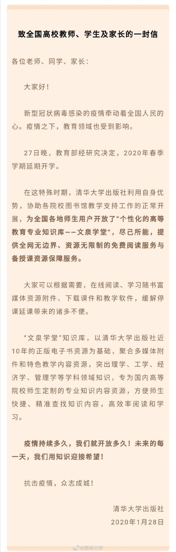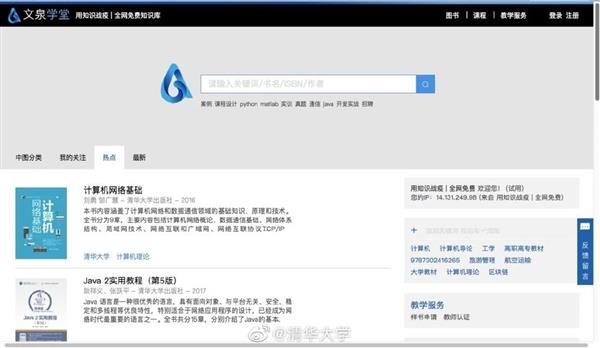这次免费开放的是清华大学的文泉课堂,据悉这是清华大学出版社出品的在线学习平台。高质量教学内容资源,可用于学生自主学习;也适用于教师在线组班教学或辅助线下授课,指导学生在线学习课件,练习和讨论。