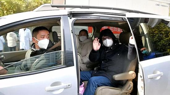 下午两点,武汉市肺科医院五位患者依次走出隔离病房,主治医生和护士为他们送上了特意准备的鲜花,办理好出院手续后由家属接回家中静养。这5名患者体温正常,咳嗽等症状明显好转,肺部病灶较入院时明显吸收。符合国家卫生健康委办公厅印发的《新型冠状病毒感染的肺炎诊疗方案》中确诊病例解除隔离和出院标准。