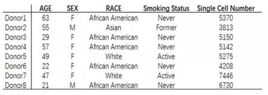 不过,他们并不是分析武汉新型冠状病毒感染者的肺部细胞RNA数据,而是采用了一个开源的数据库。数据库里面包含8位健康肺移植供体的肺部细胞单细胞RNA测序数据,一共包括43134个细胞[6]。