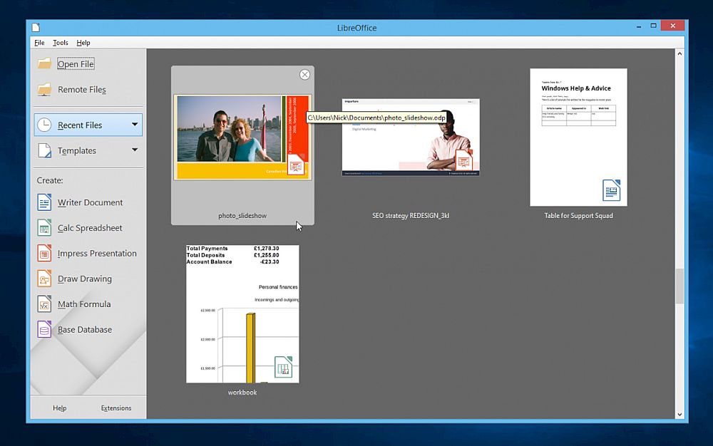 LibreOffice的“启动中心”在文档缩略图旁边添加了应用程序图标,以帮助用户区分文档类型,新版本带来了新的QR Code生成器,允许用户向其文档中添加移动友好的代码。