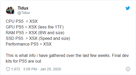 知名游戏产品报料人 @Tidux 在 Twitter 上表示,PS5 最终开发套件已经发布,且其几乎在各个主要方面的性能都优于 Xbox Series X 。