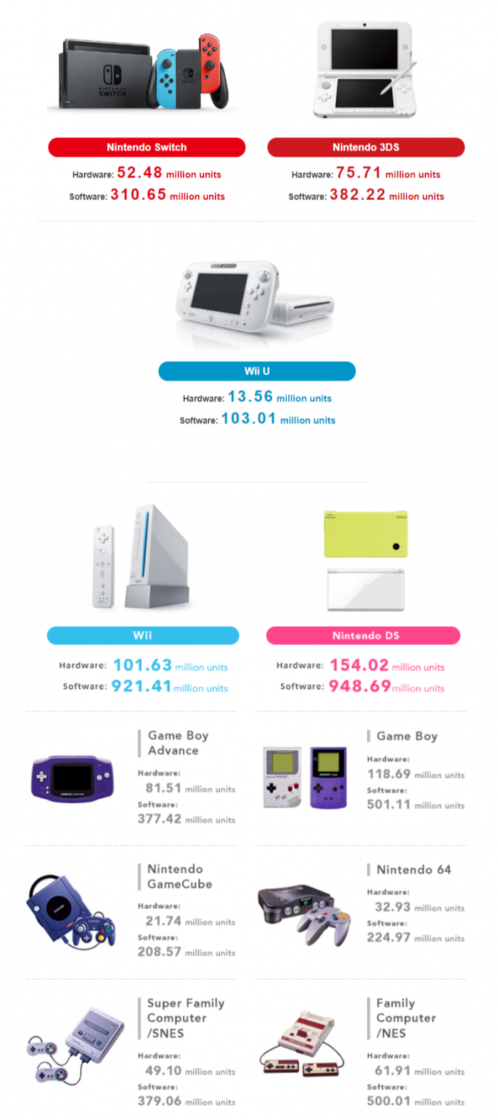 此外在硬件方面,Nintendo Switch 主机的硬件销量已经达到了5248万台,游戏软件销量达到了3.1亿份。