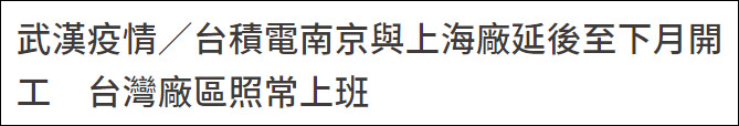 台积电表示,30日,台湾厂区全面开工,但实际上厂区生产没有中断,仍照常轮班,南京厂也一样4班2轮。为了配合当地政府延后开工的措施,南京厂到2月3日全面复工,上海厂2月10日才全面复工,但都不影响生产制造。