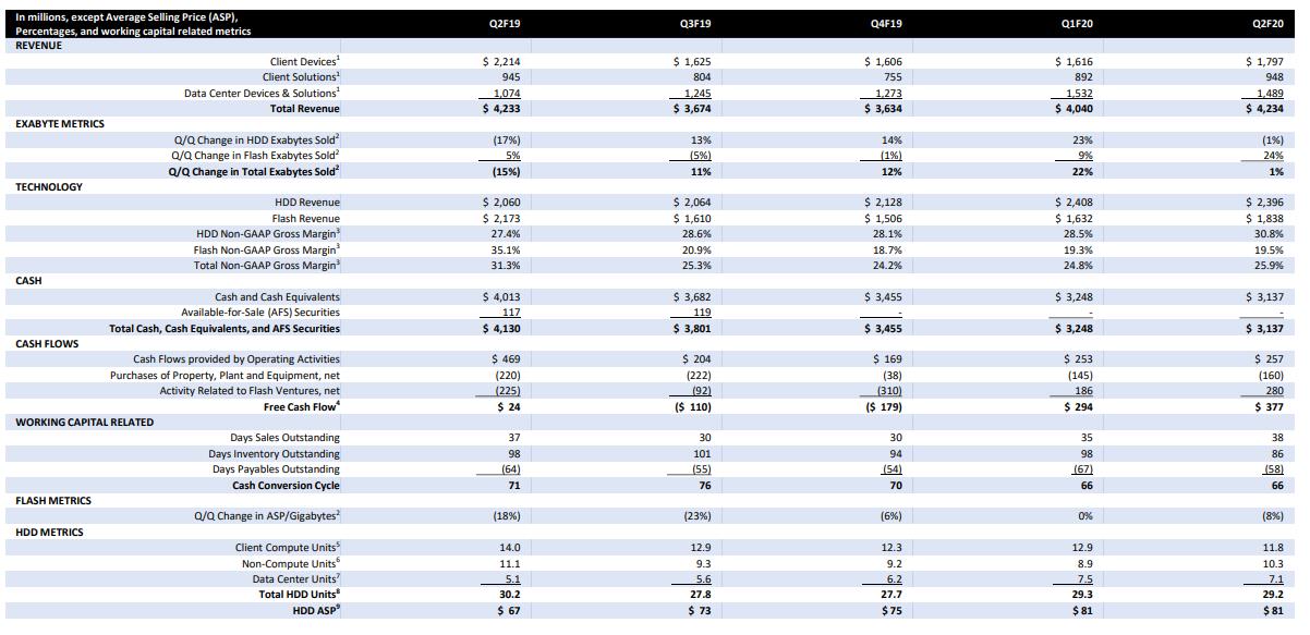 除了发布BiCS5新一代闪存技术,西数公司今天还发布了截至今年1月3日的2020财年Q2财报,当季营收42.34亿美元,同比持平,环比增长5%,净亏损1.39亿美元,去年同期净亏损为4.87亿美元。
