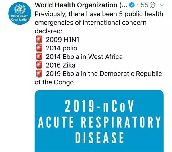 新型冠状病毒感染的肺炎疫情构成“国际关注的突发公共卫生事件”,这也是自2005年《国际卫生条例》实施以来,世卫组织宣布的第6起“国际关注的突发公共卫生事件”。