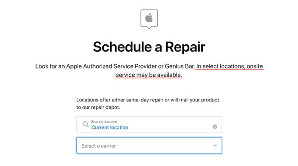 用户可以访问苹果美国官网获取支持页面下方的“预约维修”来访问这项功能。Go Tech Services被列为Apple Store和授权服务提供商的可行替代方案。点击进入会将用户转到Go Tech Services的网站,他们可以在此安排现场维修时间。