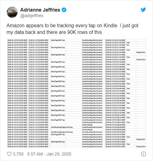 在电子阅读器市场,亚马逊的 Kindle 产品线是当之无愧的头号赢家,且该公司为 Kindle 用户提供了庞大的图书资源和便利的同步功能。然而近日有爆料称,亚马逊也在追踪用户的每一次点击、在设备上记录和存储数据,这又是怎么一回事呢?本周早些时候,The Markup 调查记者 Adrianne Jeffries 在推文中揭示了幕后的细节。