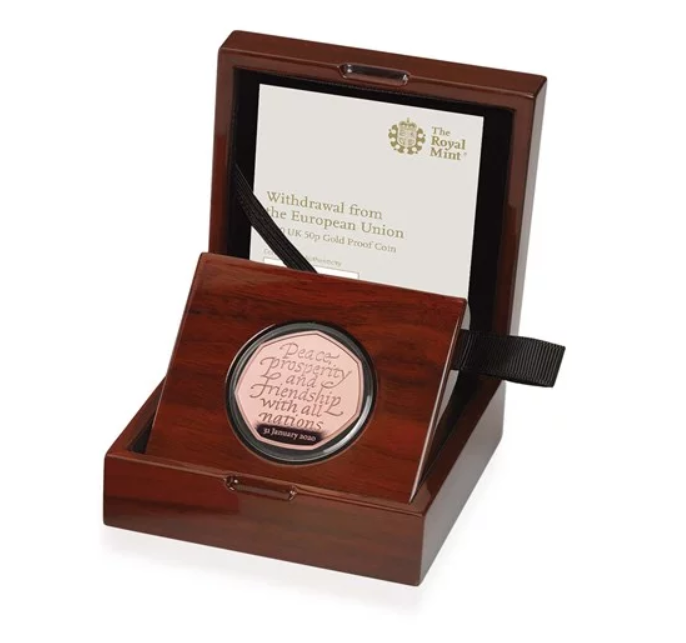 根据英国皇家铸币局(Royal Mint)官方网站显示,售价为945英镑(约合8620元人民币)的英国脱欧50便士纪念金币(约合4.6元人民币)于当地时间1月31日中午售罄。这批脱欧纪念金币限量发行1500枚,于周五早上开始在皇家铸币局官方网站销售。