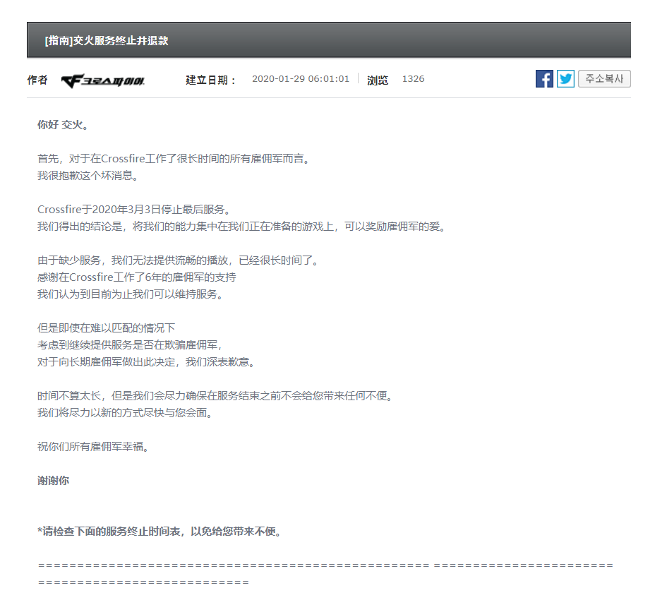 近日,韩国著名游戏开发公司Smilegate发布公告,其旗下的射击游戏《穿越火线》的韩国服务器将于2020年3月3日正式关闭。虽然《穿越火线》在国内非常火爆,曾经号称是3亿鼠标的枪战梦想。不过在全球范围来看,这款游戏过得并不算滋润。