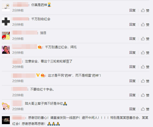 在评论中,有许多网友表示:“你就是药神!”“好人一生平安”。还有网友表达了关心:“您也带口罩吧,也要小心”“大侠勇武!保重身体”。