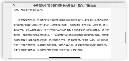 科技日报官方微信也紧急推文:“抑制≠预防和治疗!千万不要自行服用双黄连口服液”。