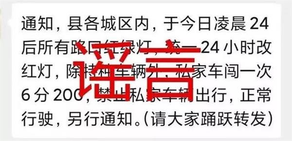 谣言三:“所有路口红绿灯统一改红灯”“禁止私家车辆出行”