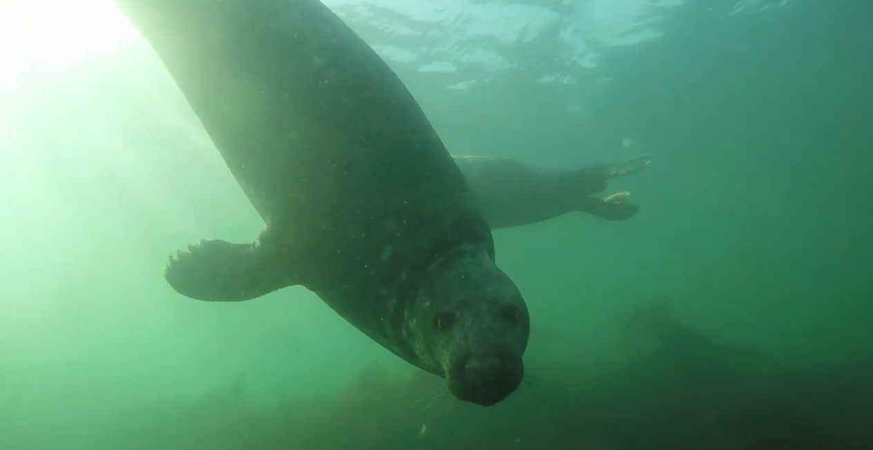 Ben Burville博士是纽卡斯尔大学的一名访问研究员,他潜心研究灰海豹已有17年时间。他几乎不敢相信自己能拍到这样的画面,这名博物学家拍摄的视频显示,一只雄性灰海豹在水下用前肢拍击,发出类似枪声的声音,这是科学家们第一次看到海豹在水下作出这样的行为。