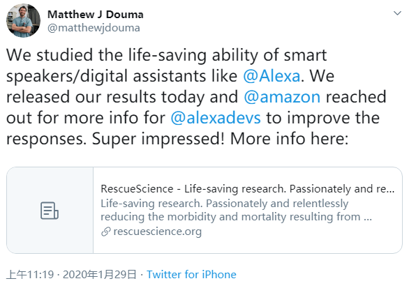 研究人员指出,微软 Cortana 和苹果 Siri 给出的响应质量偏低,因此不具备参考价值。不过谷歌 Assistant 和亚马逊 Alexa 的识别率不错,能够在 46% 的测试中提供急救建议。