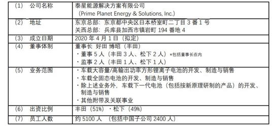 文件显示,自今年4月1日起,丰田与松下以51:49的股比成立合资公司——“泰星能源解决方案有限公司”,研发、生产、销售车载大容量、高功率方形锂离子电池。