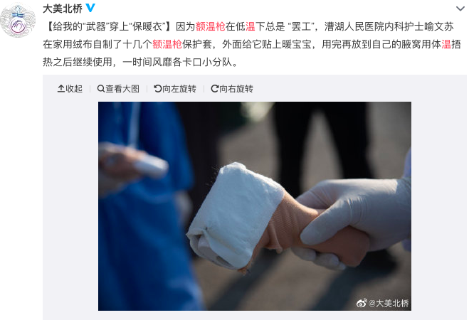 这也就可以理解为何在高速路口或其他室外使用的额温枪也会穿上“棉衣”,甚至部分工作人员会用自己的体温来为额温枪保暖,不禁让人心生敬意。