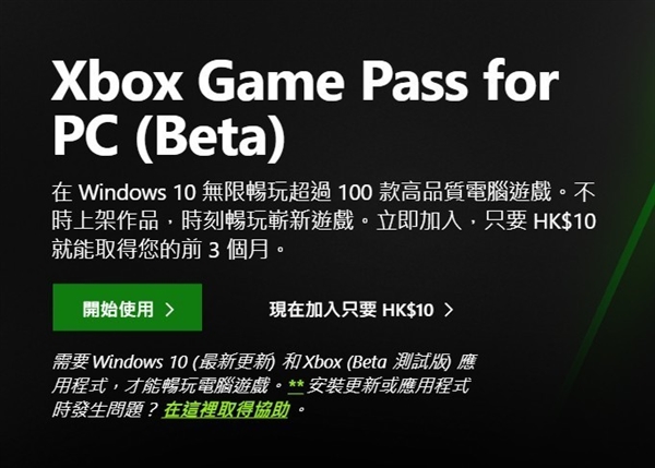 目前,微软PC版Xbox Game Pass依然处于活动阶段,只需要10港币就可以获得3个月的使用权。Xbox Game Pass以“100 多款游戏畅玩,单一超低月费”为口号、,一开始仅面向 Xbox One 主机平台;直至去年6月才正式进军 PC 游戏市场,推出了单独的 PC 版。