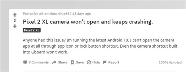 2月4日消息,据外媒报道,部分Pixel 2用户在Reddit、Pixel Phone等论坛反映,Pixel 2相机打开之后会崩溃(前置相机可正常使用)。