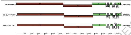 Fig。 1 | Genome organization of SARS and SARS-like CoVs including Tor2, CoVZC45 and WHCV determined here。